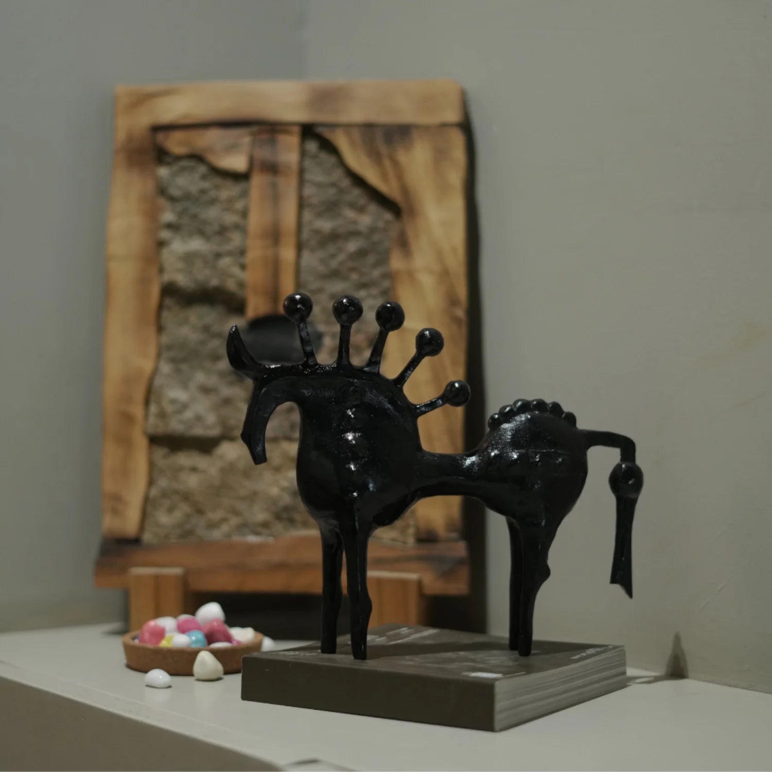 With legs so slender they seem barely able to support its ornate, spiked body, Zoral roams the boundless fields of imagination. Each spine along its back carries whispers of ancient wisdom, gathered from winds that once circled forgotten worlds. Poised atop tomes of fashion and ideas, Zoral draws sustenance from human creativity, feeding on our desire to adorn, innovate, and redefine the spaces we inhabit. Its abstract form, simultaneously fragile and formidable, transforms any setting into a sanctuary of inspiration a reminder that strength and elegance can coexist in perfect harmony.