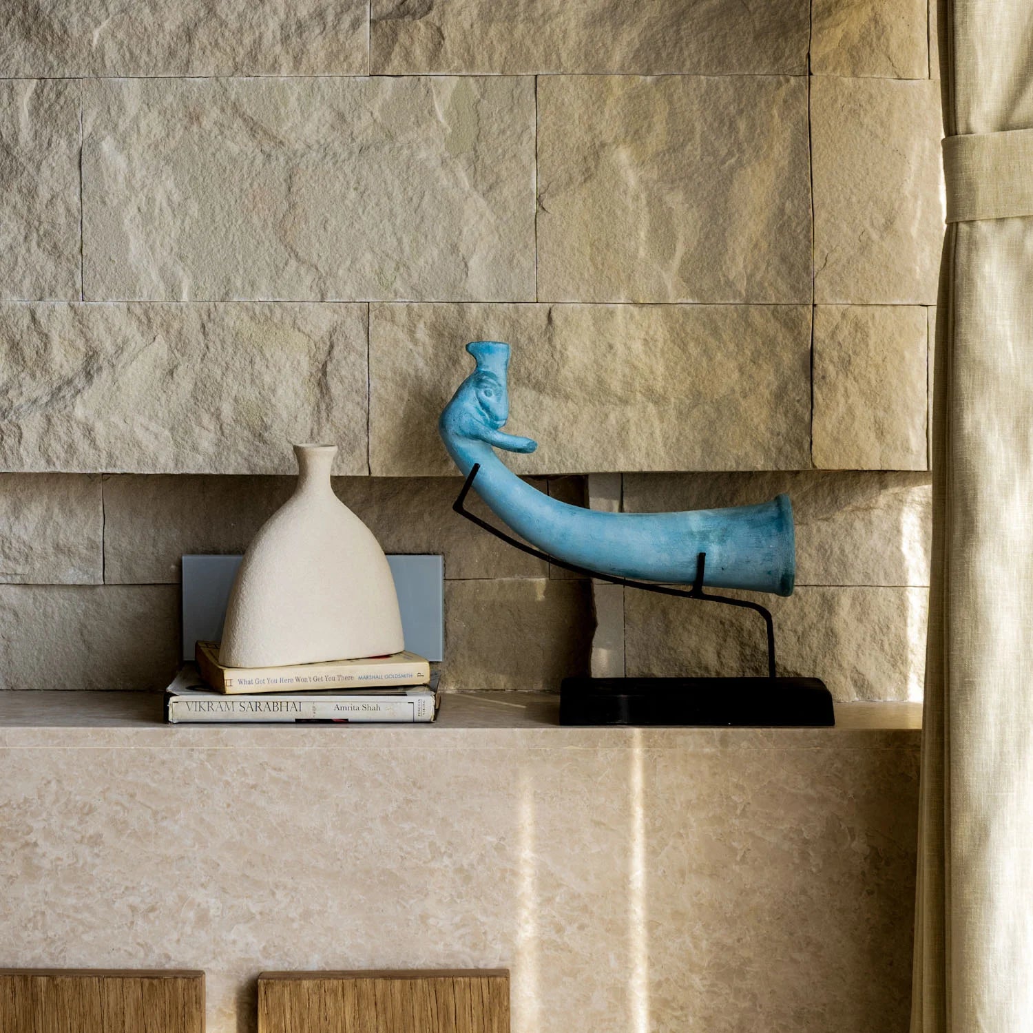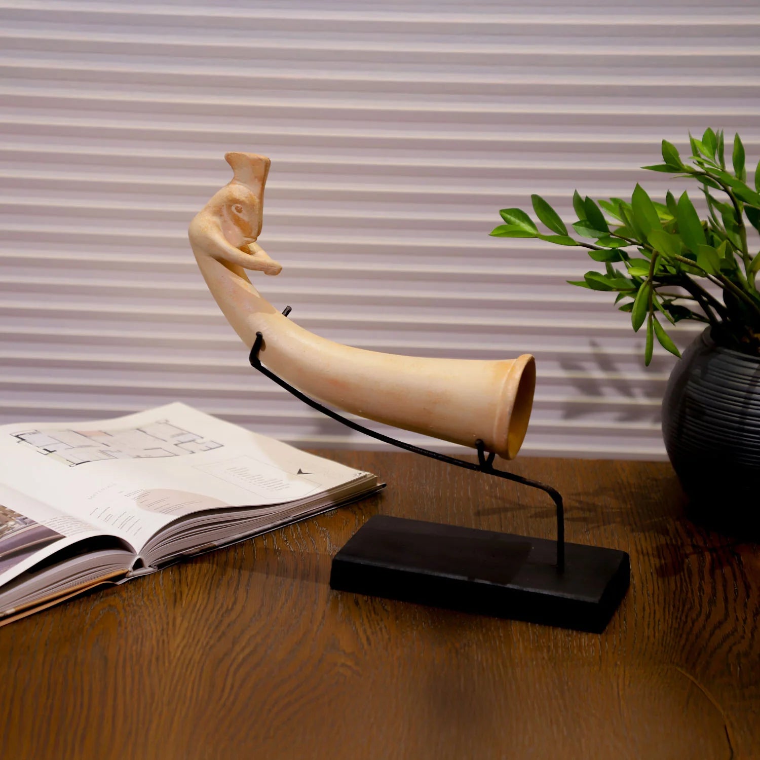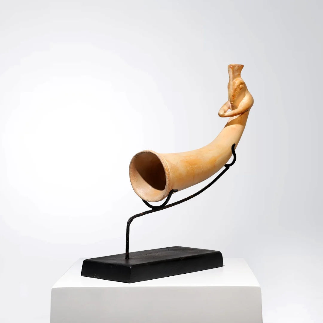 Inspired by the mythical rabbit horn, Lore symbolizes intuition, renewal, and balance. Handcrafted in warm, earthy tones and poised on a sleek metal stand, it bridges ancient folklore and modern design.