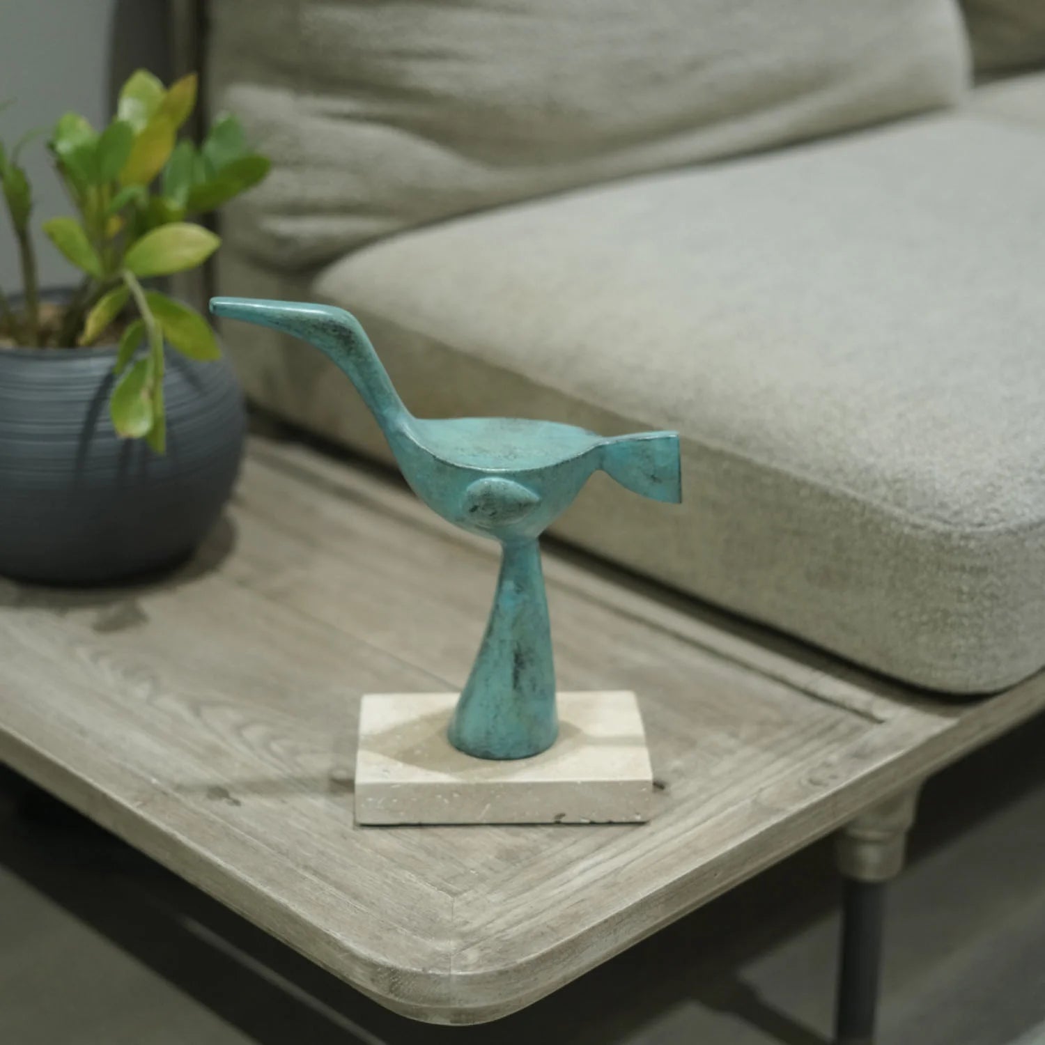 Verdant Grace is an abstract bird rendered in rich green atop a pristine marble base. Its flowing, stylized form evokes vitality, growth, and the effortless grace of nature. A celebration of renewal and rejuvenation, this piece brings a refreshing energy to any space, whether displayed on a console, shelf, or central table. Its vibrant hue and fluid silhouette make it a focal point that inspires optimism and a sense of living harmony.